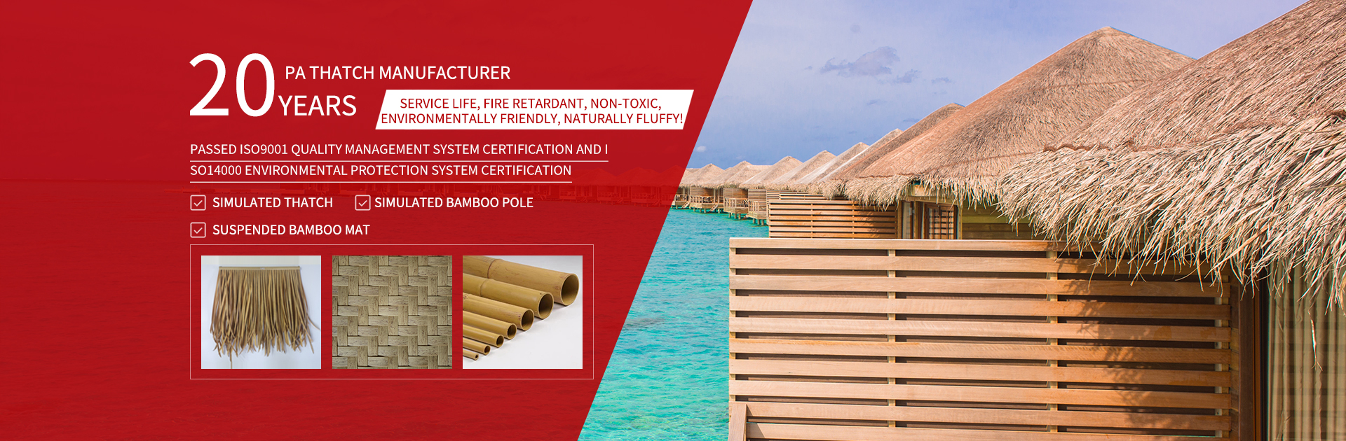 Xiamen Huali Long Plastic Industry and Trade Co., Ltd. is located in the beautiful coastal city of Xiamen, covering an area of 6000 square meters. It is a professional manufacturer, manufacturer, research and development, and sales of imitation thatch tiles/plastic thatch/simulated bamboo, bamboo sheets/simulated bamboo mats/fireproof thatch, and other products.